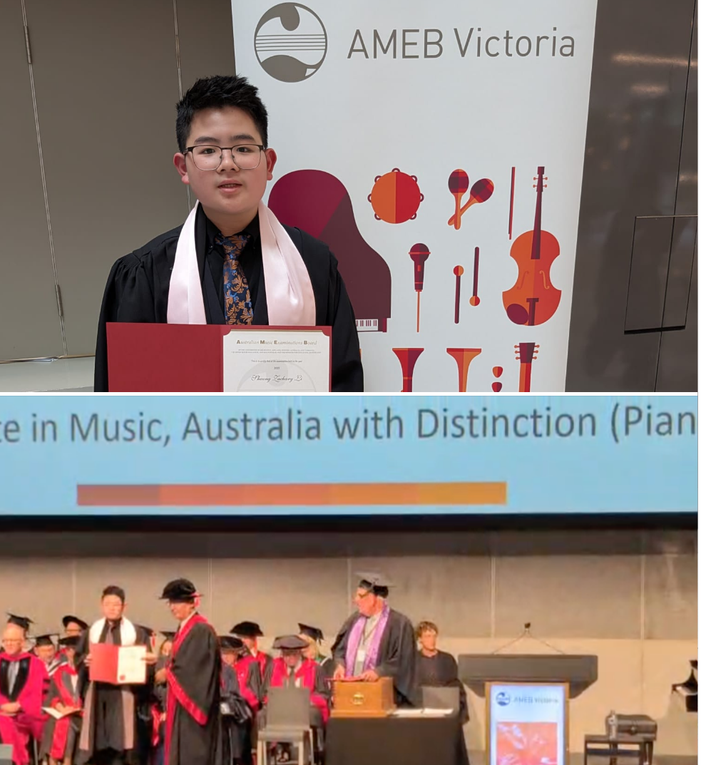 Congratulations to Zachary Li for passing his LMusA exam with distinction from the Australian Music Examination Board!